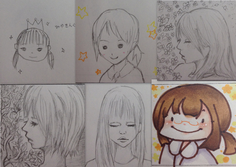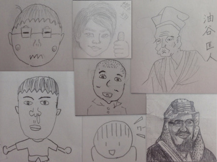 My students at my main school are much more shy. Usually the girls are more brave than the boys, and will come talk to me in the staff room. For homework after the first lesson, I asked students to complete a self-introduction worksheet. Part of the worksheet involved drawing a picture of themselves. Some girls drew manga style pictures, while some boys seemed to draw famous figures from their history textbook. Here is a sample of some of the drawings: