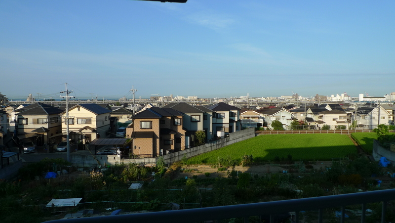While the shower room is a bit antiquated (I have to turn on a gas water heater to use the shower), the rest of the place was relatively clean and spacious. I also have a small front balcony, and a really large back balcony that overlooks a community vegetable garden and a rice paddy. I can even glimpse the ocean on the horizon.